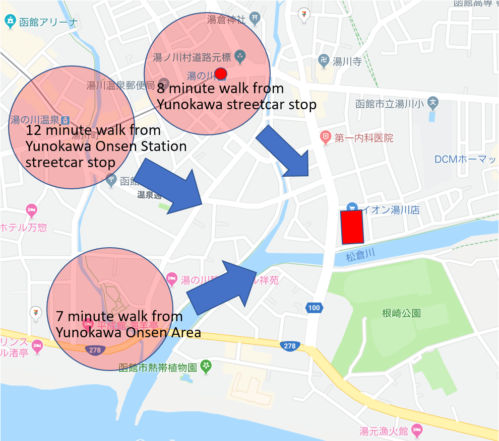 [Access] 8 minute walk from Yunokawa streetcar stop 30 minutes by regular bus from Hakodate Station |