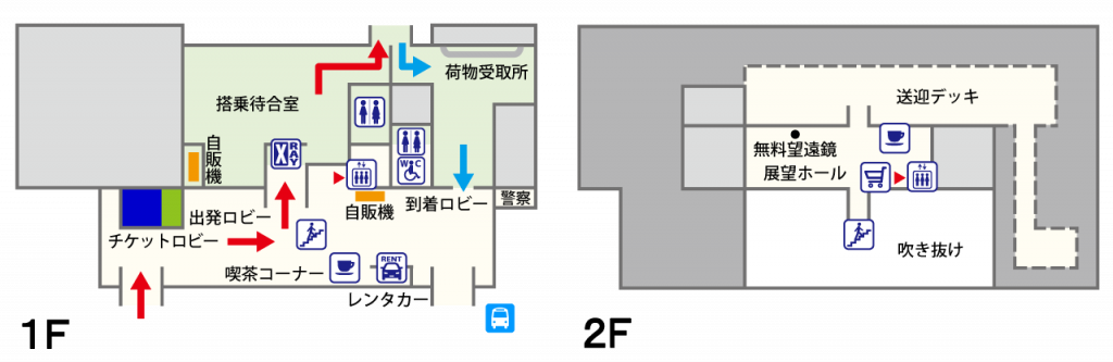 1F : Ticket lobby/Departure Lobby/Arrival Lobby/Boarding Gate/Rental Car Counter