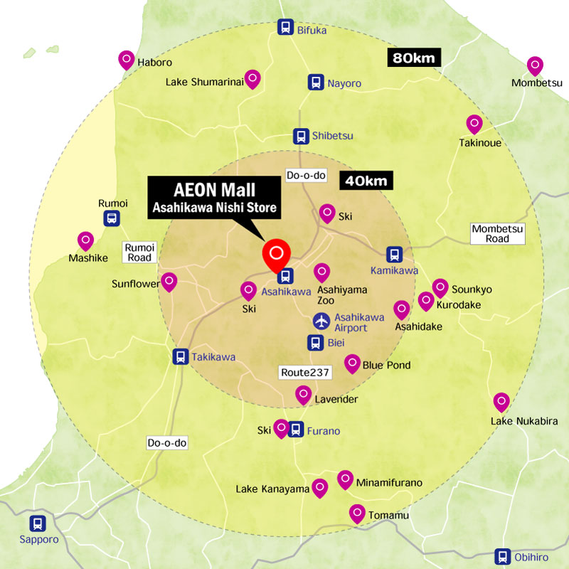 AEON MALL Asahikawa Nishi is the largest shopping mall in Hokkaido’s North and East Hokkaido areas.