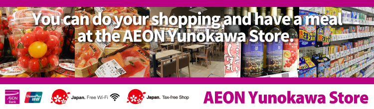 AEON is a tax-free store. We have a large selection of Japanese daily goods such as medicine, cosmetics, health food, cameras, home electric appliances, out-door wear, food, liquor, and souvenirs.