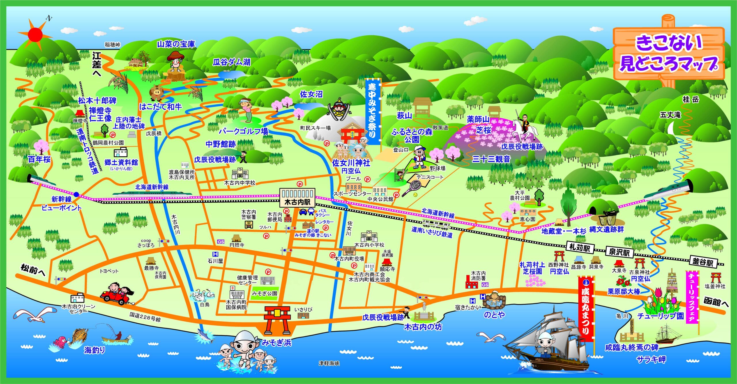 Around Kikonai cho’s downtown / Satsukari and Saraki areas / Tsuruoka Park area