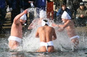 The traditional Shinto ritual of Kikonai where we pray for a good catch and a good harvest. 4 young pupils clutching 4 Goshintai (objects of worship) dive into the extremely cold Tsugaru Strait, purifying the Goshintai. The ceremony is held from January 13th to the 15th every year.