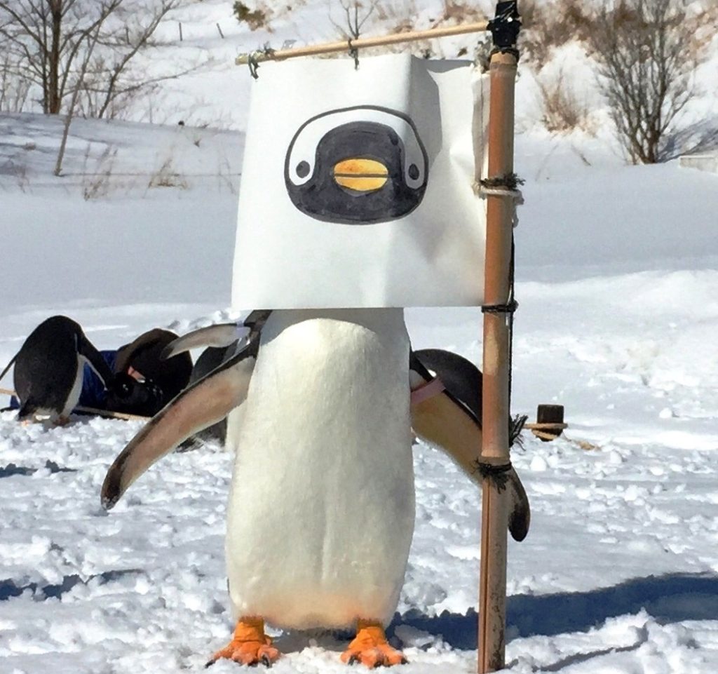 After the egg is laid, the parents spend approximately 36 days taking turns keeping the egg warm.The parents even care for their chick with constant accompaniment for about three months after hatching. The young bird grows to the adult size two months after birth. In Otaru Aquarium, eggs often hatch around June.