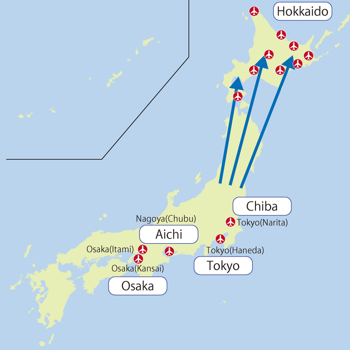 Timetables and tourist information nearby 9 airports in Hokkaido